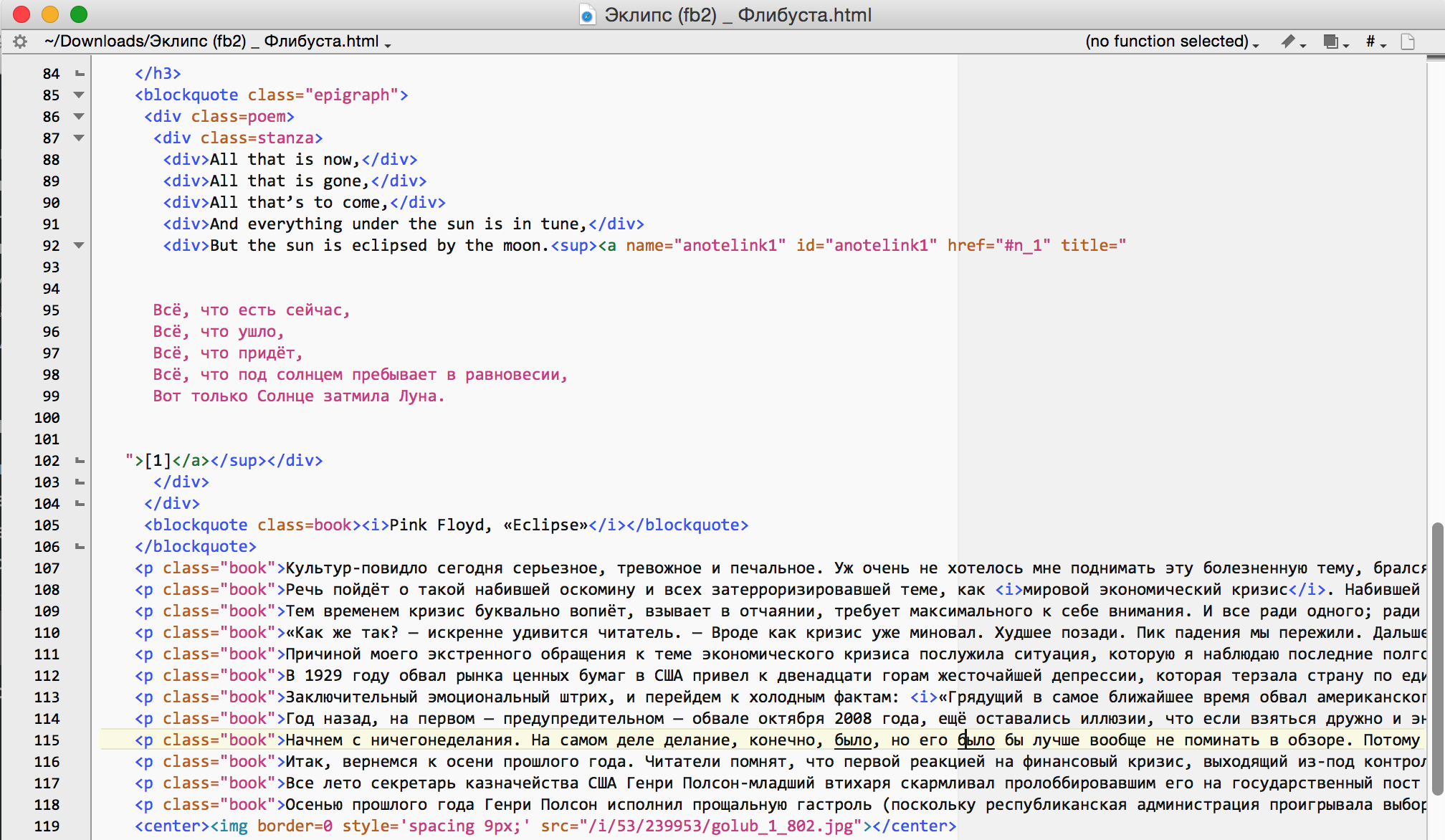 Так выглядит код HTML одной из статей Сергея Голубицкого, размещённых на портале Флибуста.