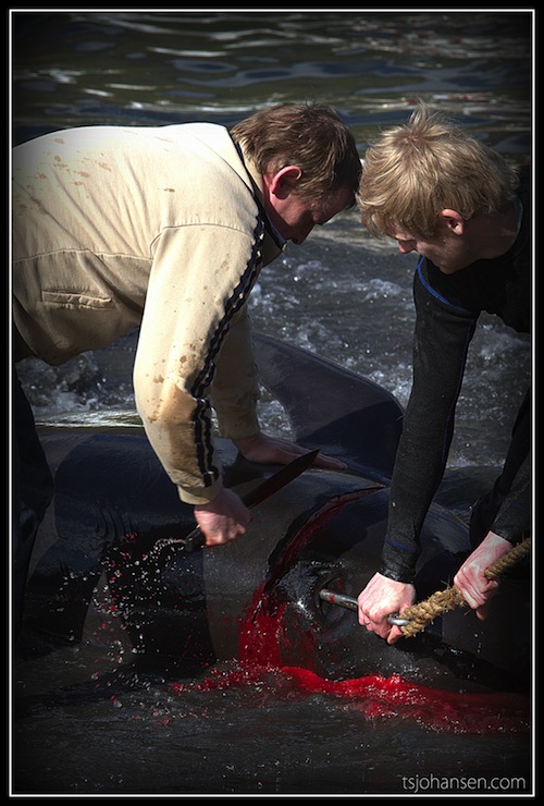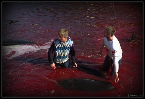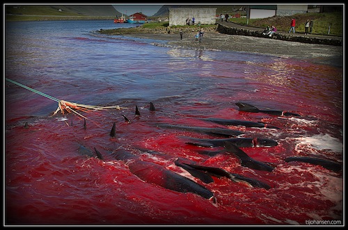 При обсуждении поста “Взгляд вегетарианца на корриду” один из читателей привёл grindadráp  – национальную забаву аборигенов Фарерских островов – в качестве примера злодеяний “человеков-альф”, а заодно и аналога испанской корриды. Единым знаменателем для сравнения, насколько я понял, послужило жестокое обращение с животными: быками – со стороны испанцев, дельфинами – со стороны фарерцев.