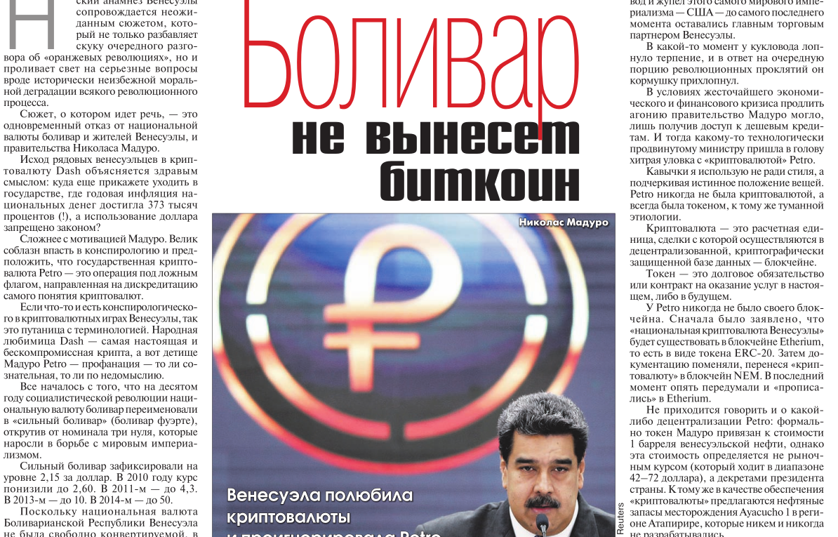 Боливар не вынесет биткоин.